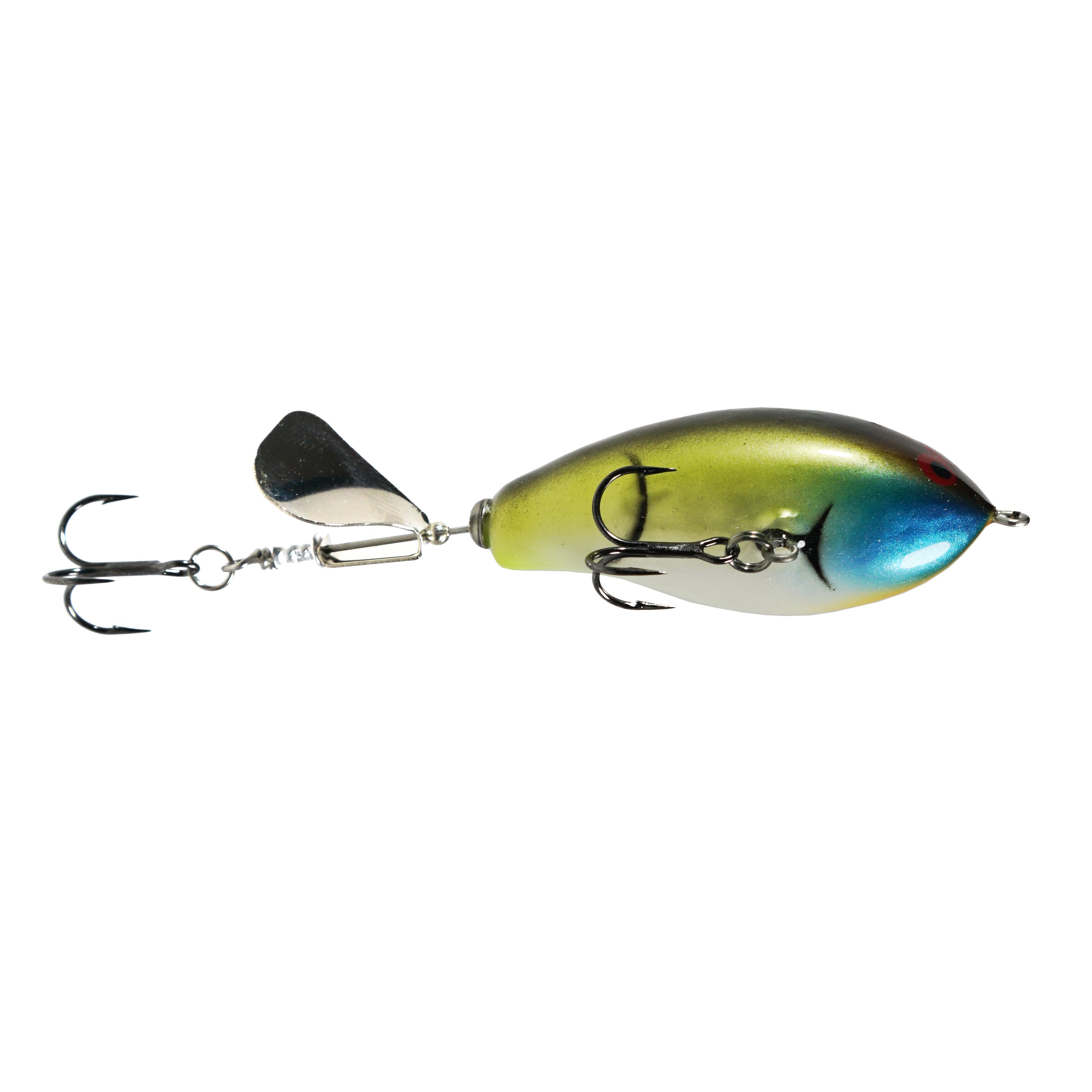 New for 2018, the Wounded Plopper is a smaller version of our Ploppin-P with a twist.....literally. Bass cant resist an easy snack on a wounded baitfish flipping on the water, so we decided to give them one in our latest addition. This smaller topwater lays on its side and rocks back and forth as it plops its way back to the boat. The combination of the plopping sounds and the rocking action has proven to be irresistible to Bass. A must have for your topwater box!!!